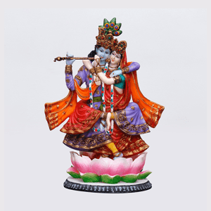 Handcrafted Big Beautiful Radha Krishna Idol On Lotus Flower-Height-10 Inches-Multicolour-Resin